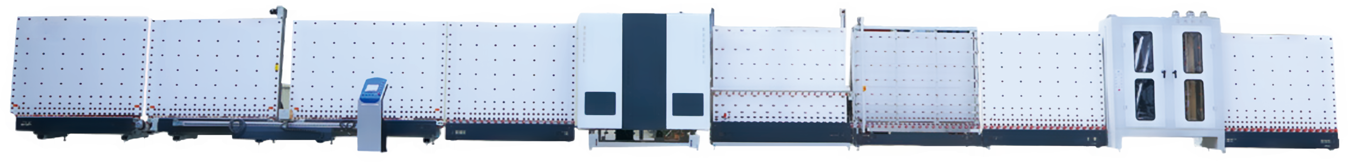 自動數控中空玻璃生產線(可生產LOW-E中空玻璃) 清洗機采用3對毛刷設計及對LOW-E玻璃專用毛刷避免膜損傷。